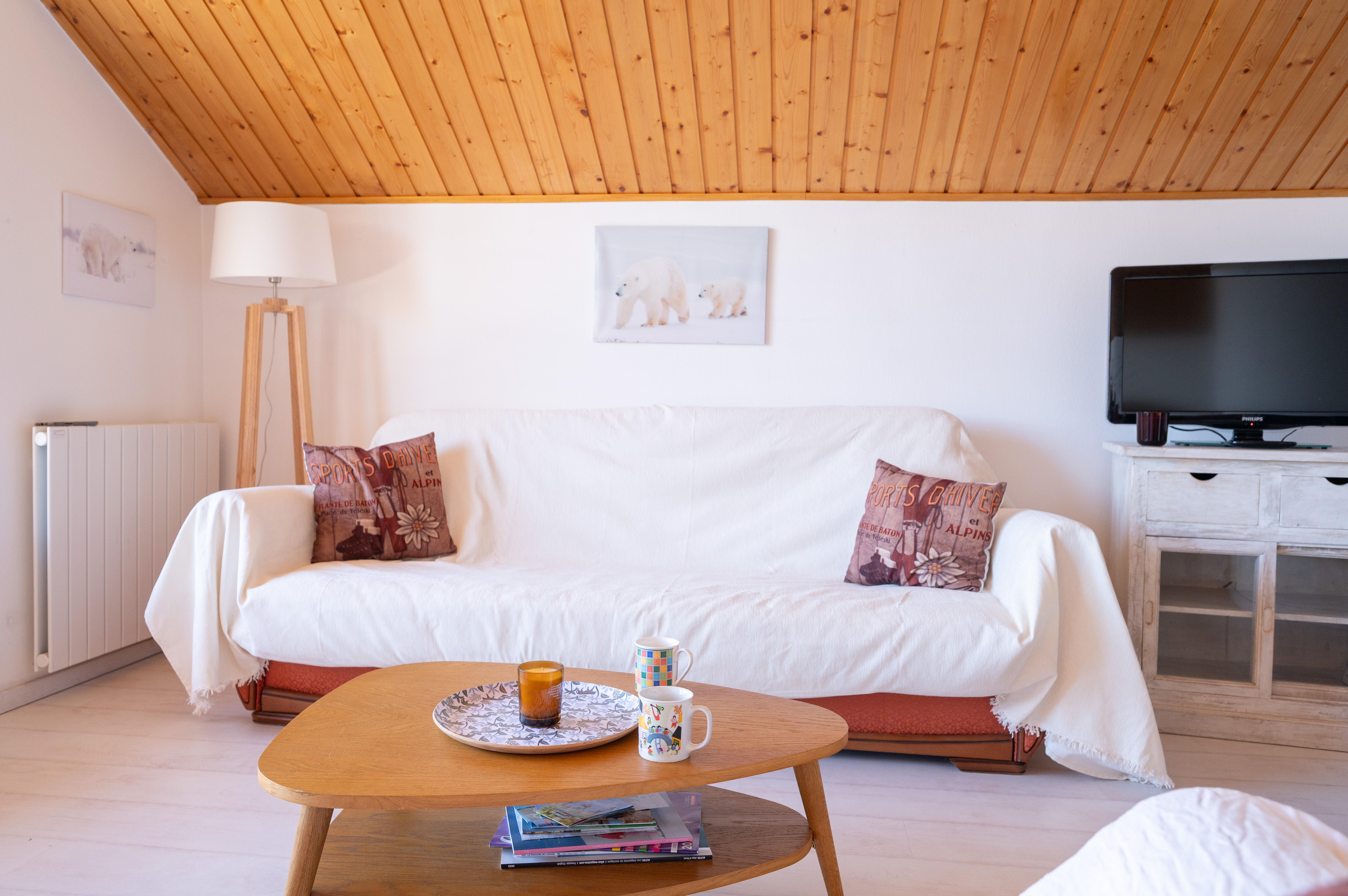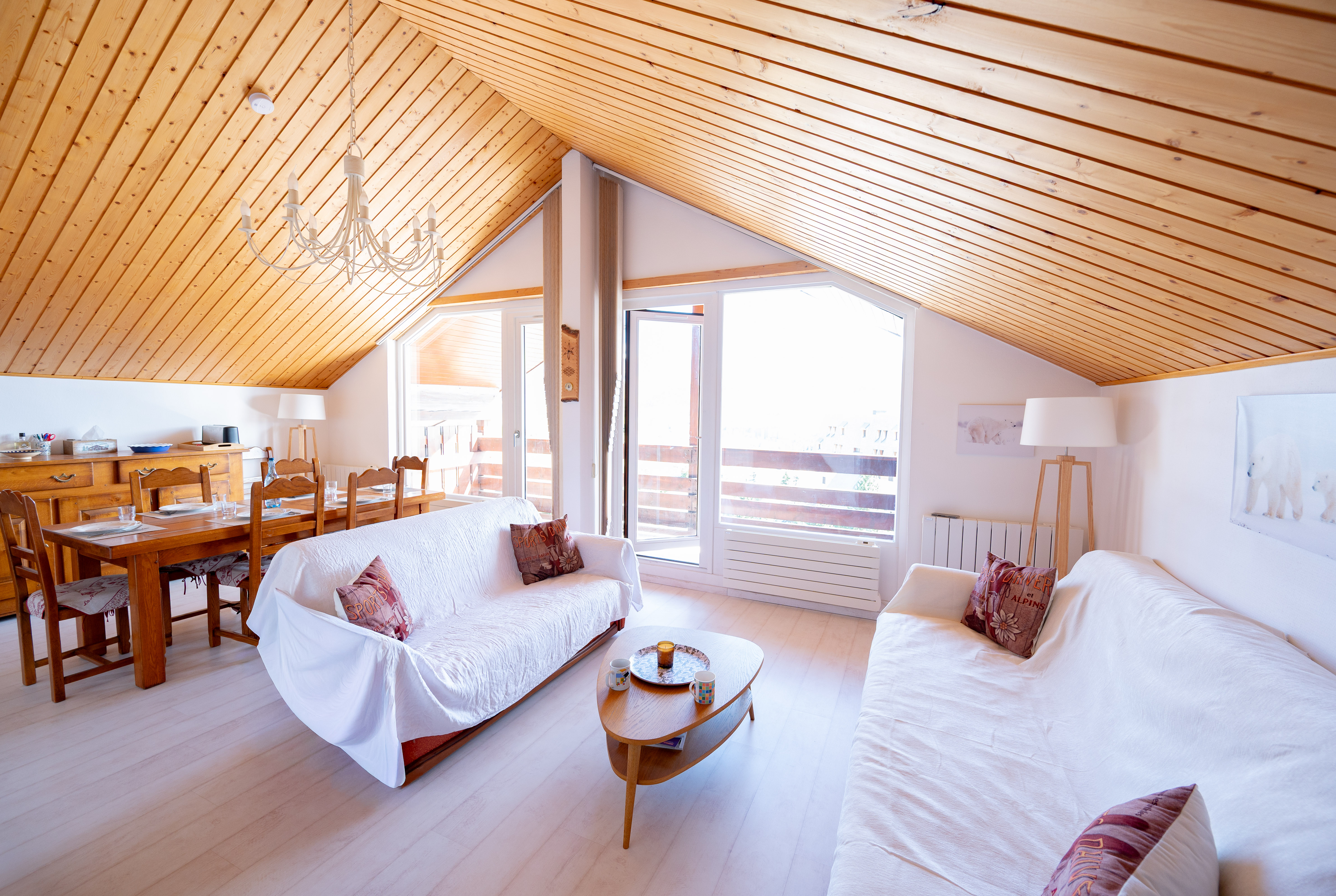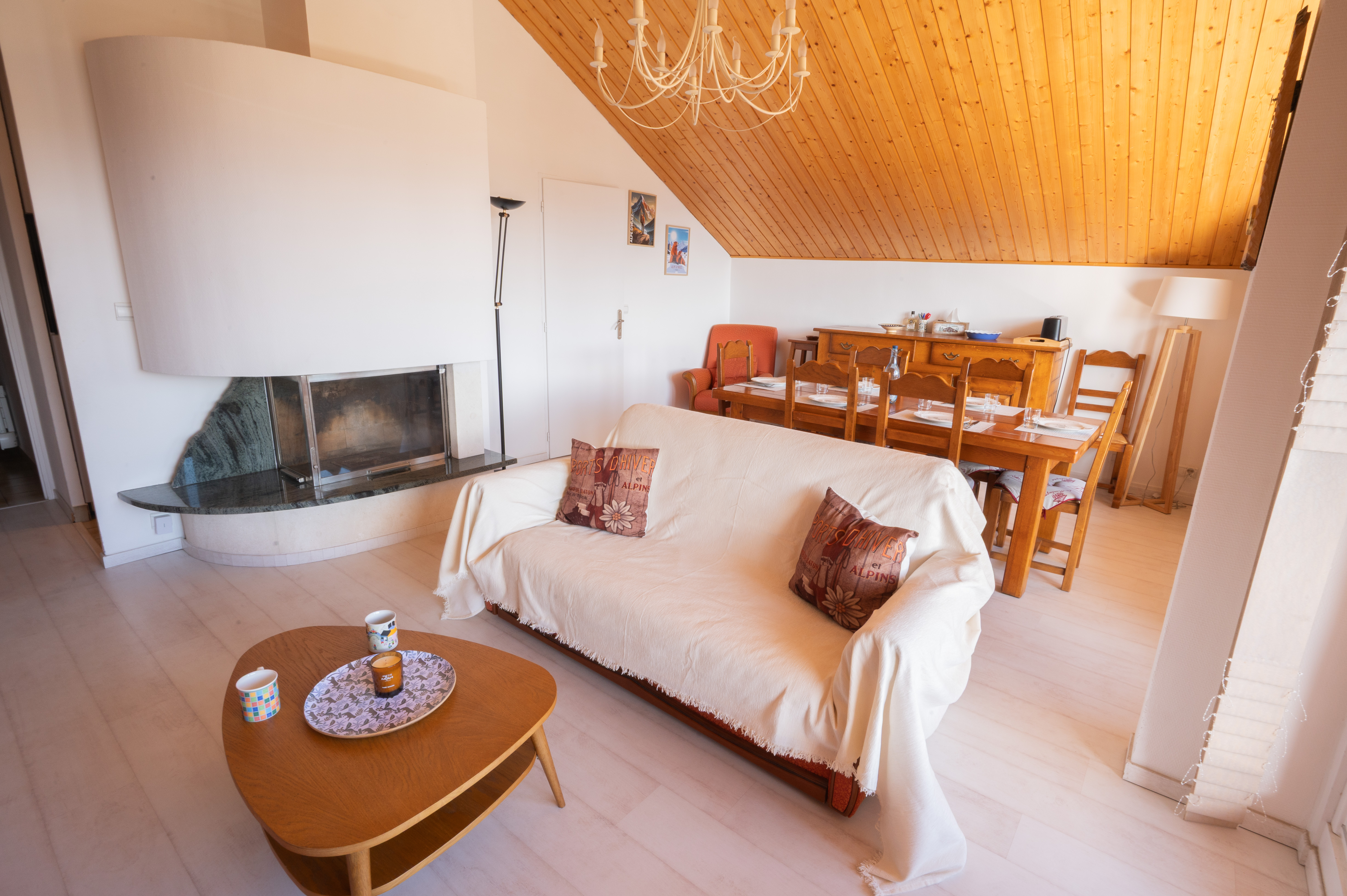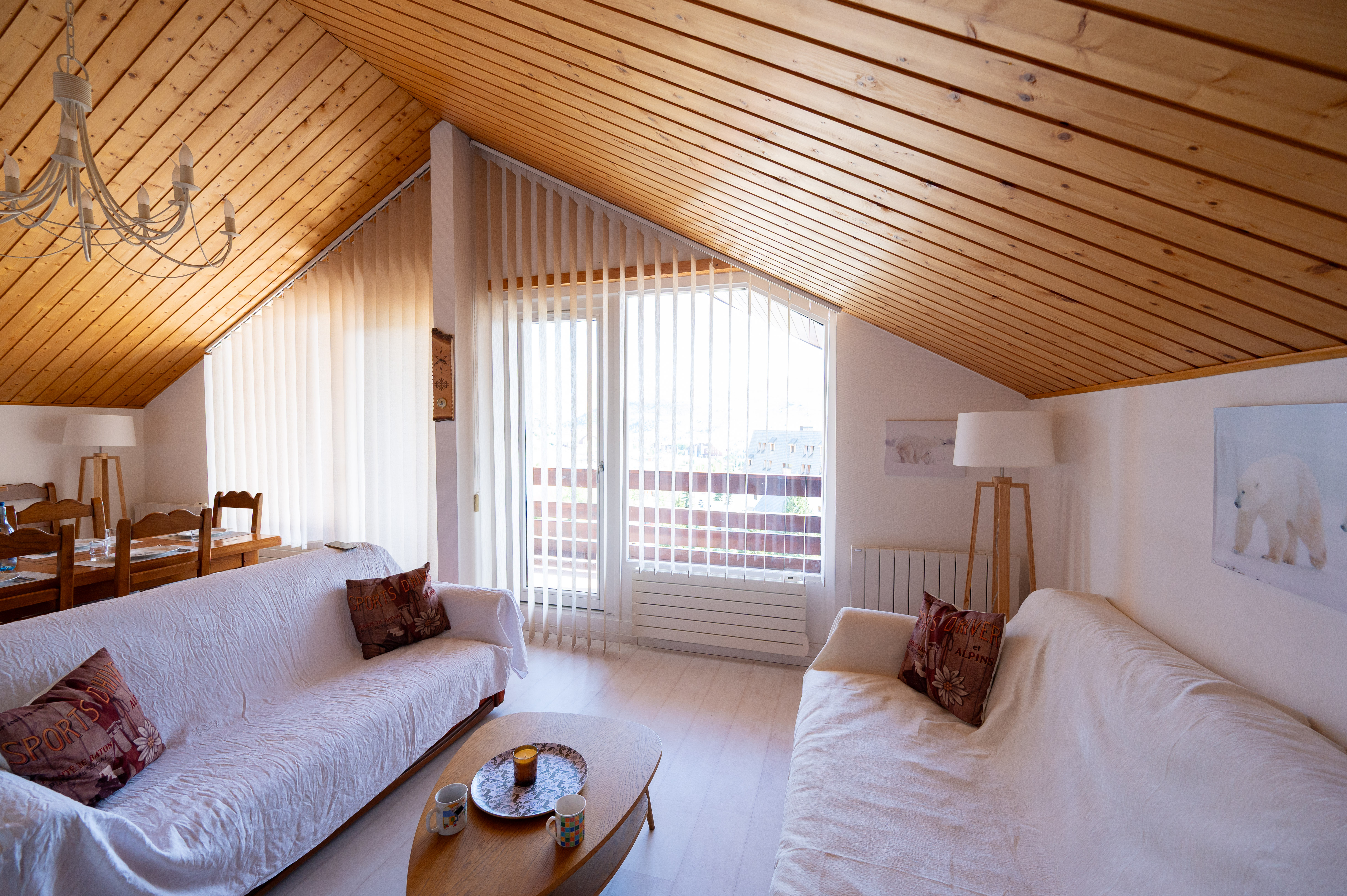 Once you've had your fill of the great outdoors, you can come back and enjoy the warm and bright atmosphere of the flat. The large living room is ideal for spending time with family or friends. There's room for everyone to relax and unwind! The beds are divided between two large bedrooms, each with storage space. The two bathrooms and two separate toilets ensure that everyone can get ready in the morning without any hassle!