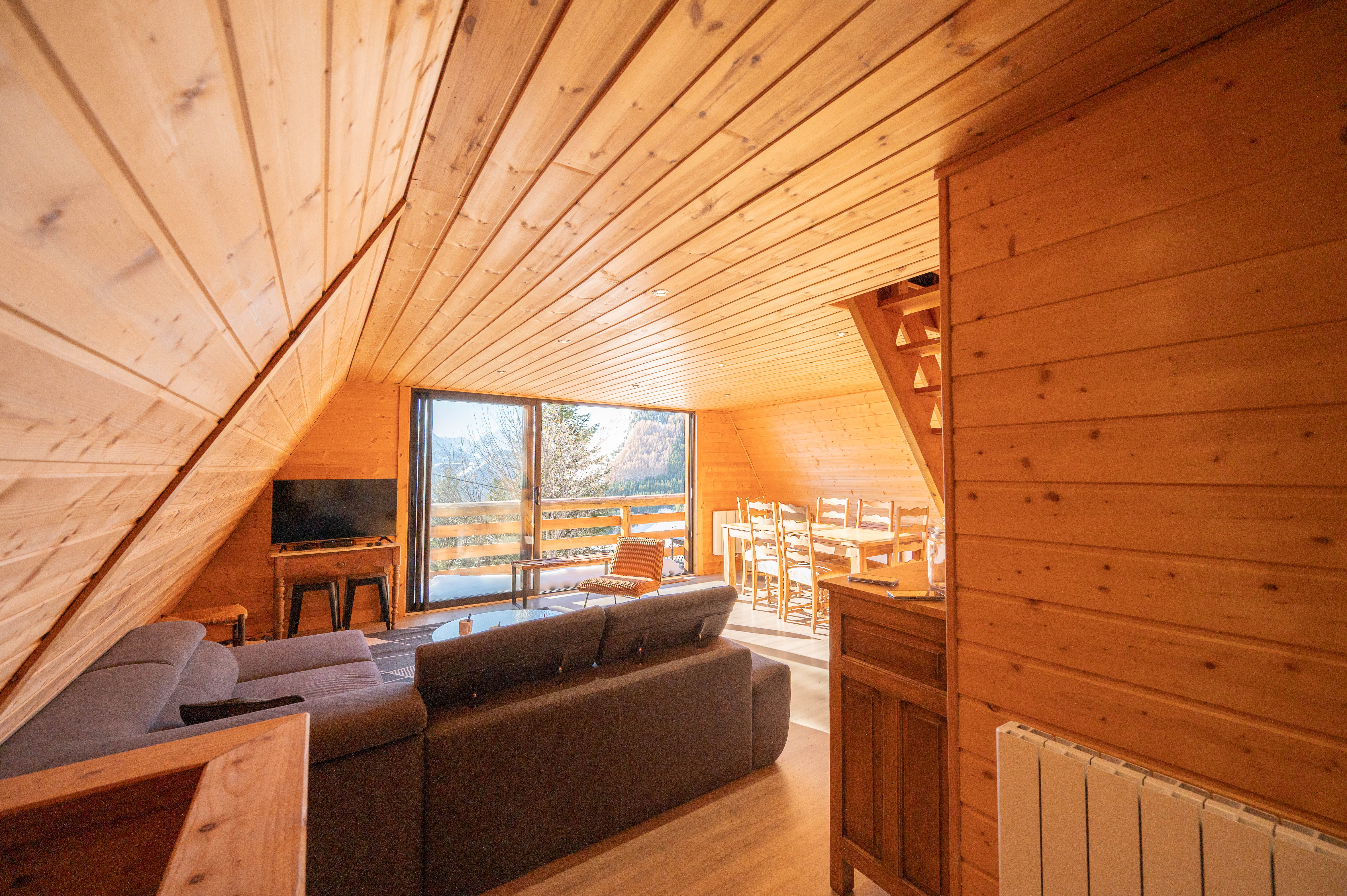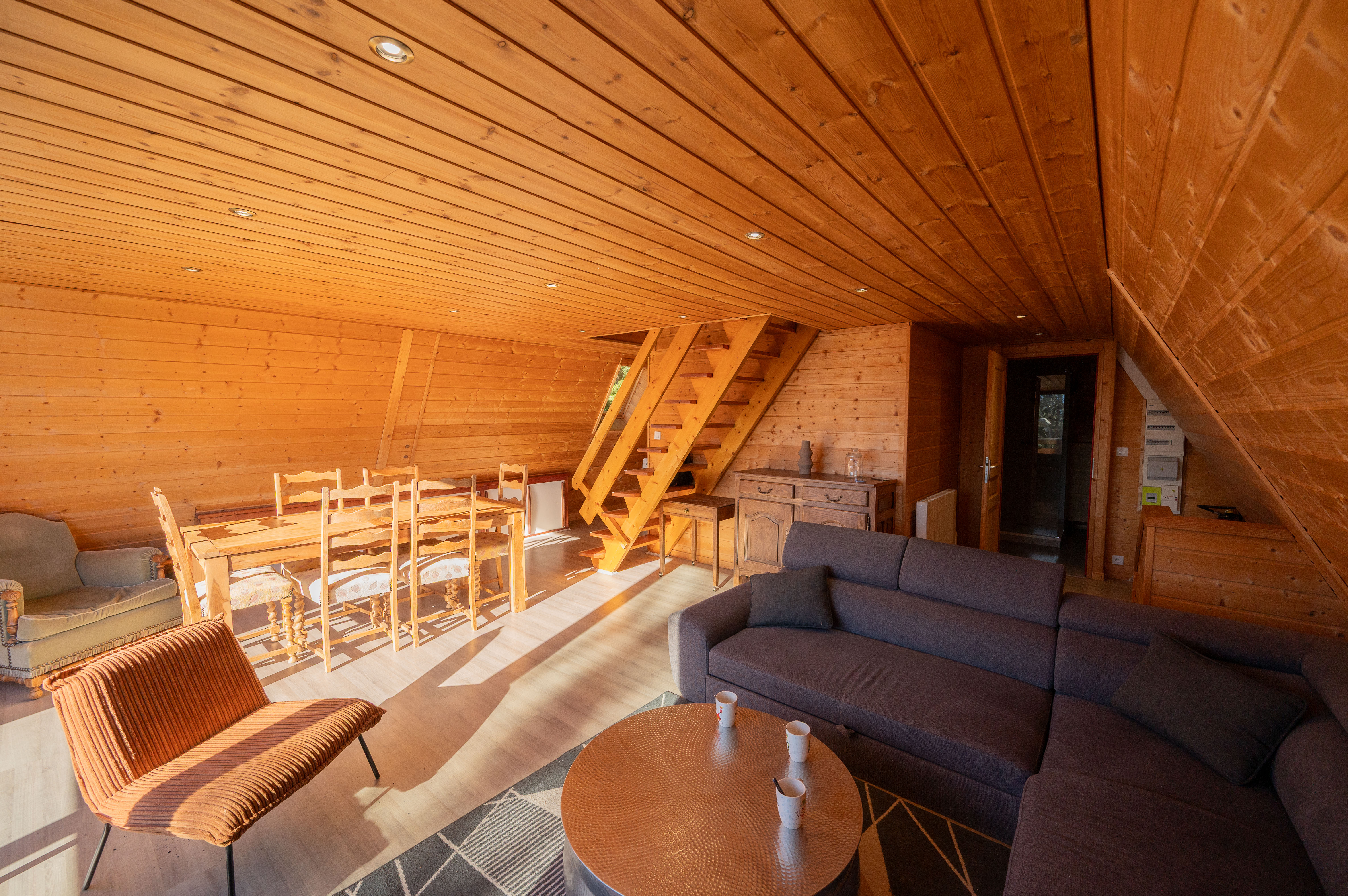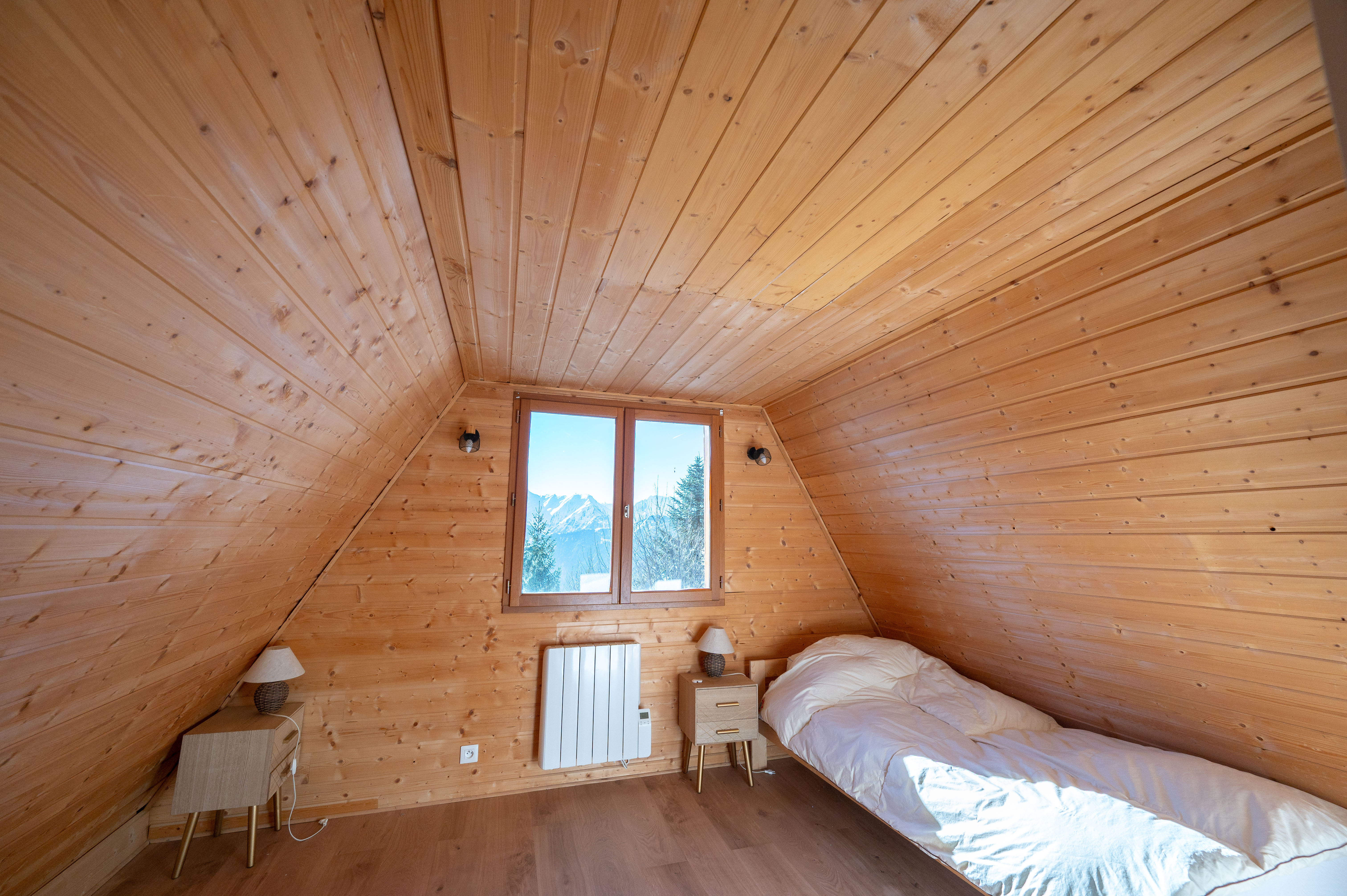 Le chalet est sur 3 niveaux: 1 chambre double, sa salle de bain (baignoire) et WC au rez-de-chaussée, un espace de dépose des équipements de ski également. Au premier étage, un grand séjour cuisine avec balcon plein Sud, ainsi qu'une seconde chambre double avec salle de bain et WC. Le niveau 3 quant à lui est équipé de 2 chambres spacieuses, la première avec un lit simple et un bureau, la seconde propose 2 lits simples et un "coin montagne" avec un lit simple dans l'espace commun de l'étage. Il y a également 1 salle de bain douche et un WC séparé. 2 places de parking sont disponible au bas du chalet.