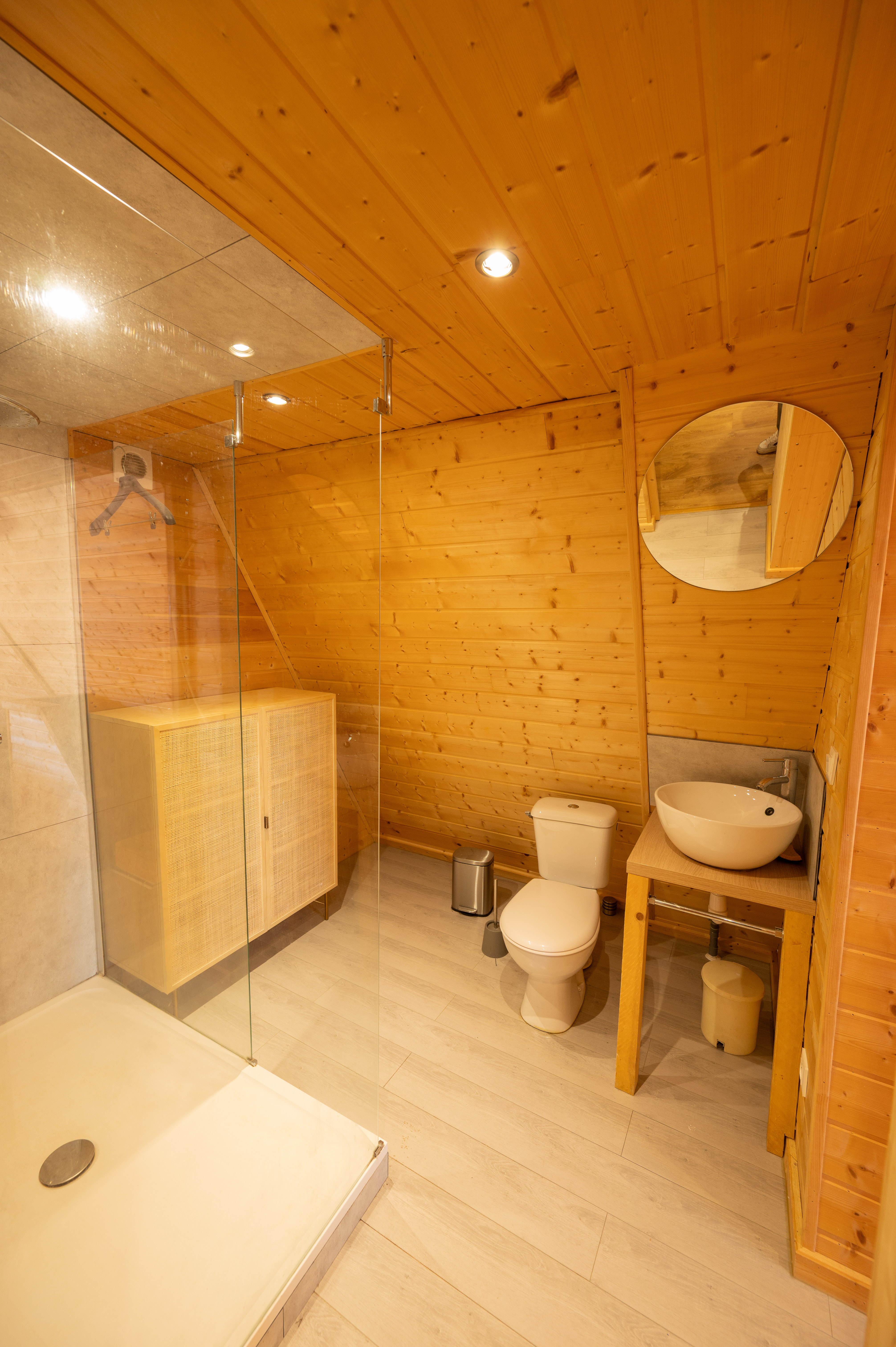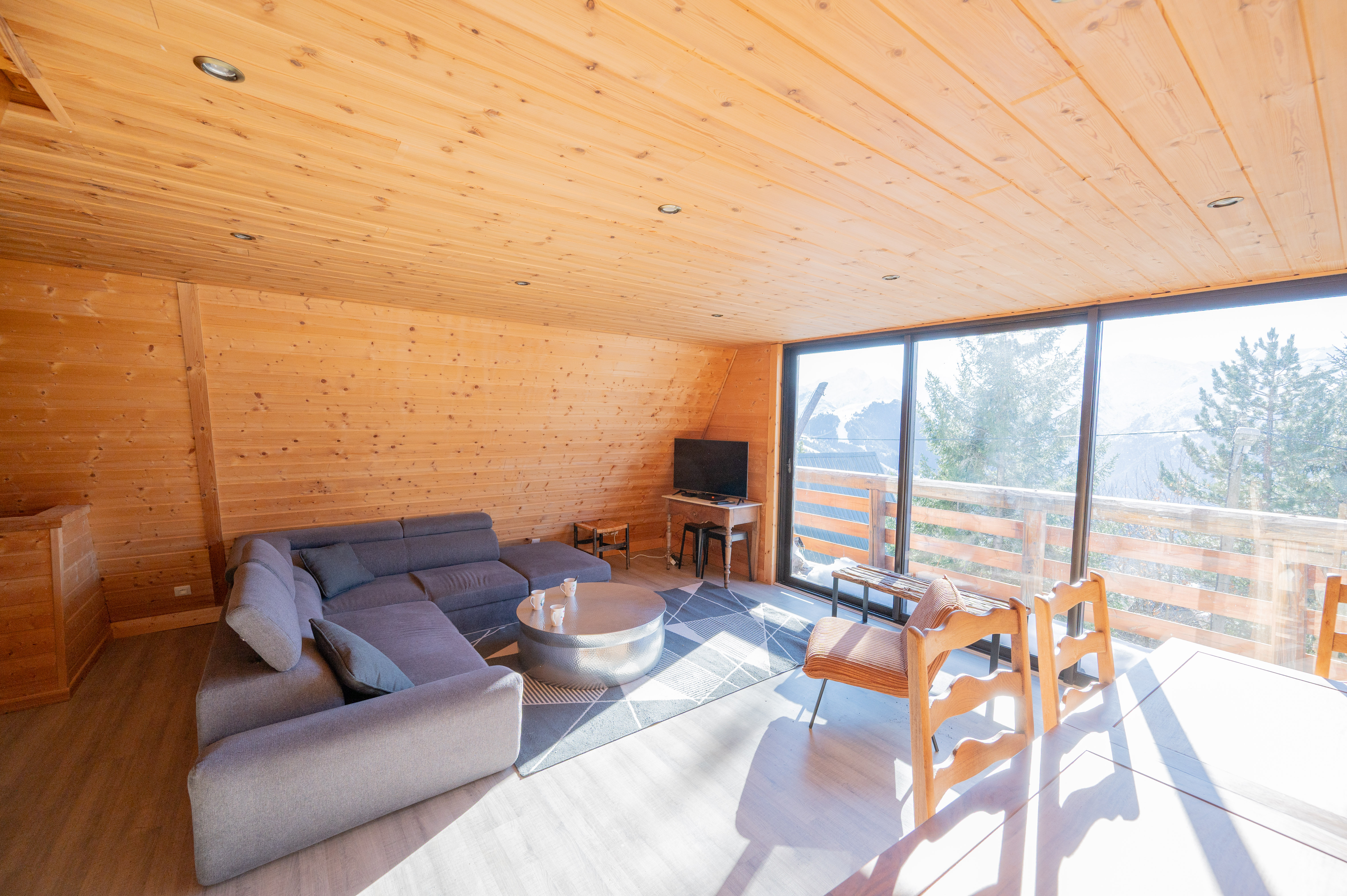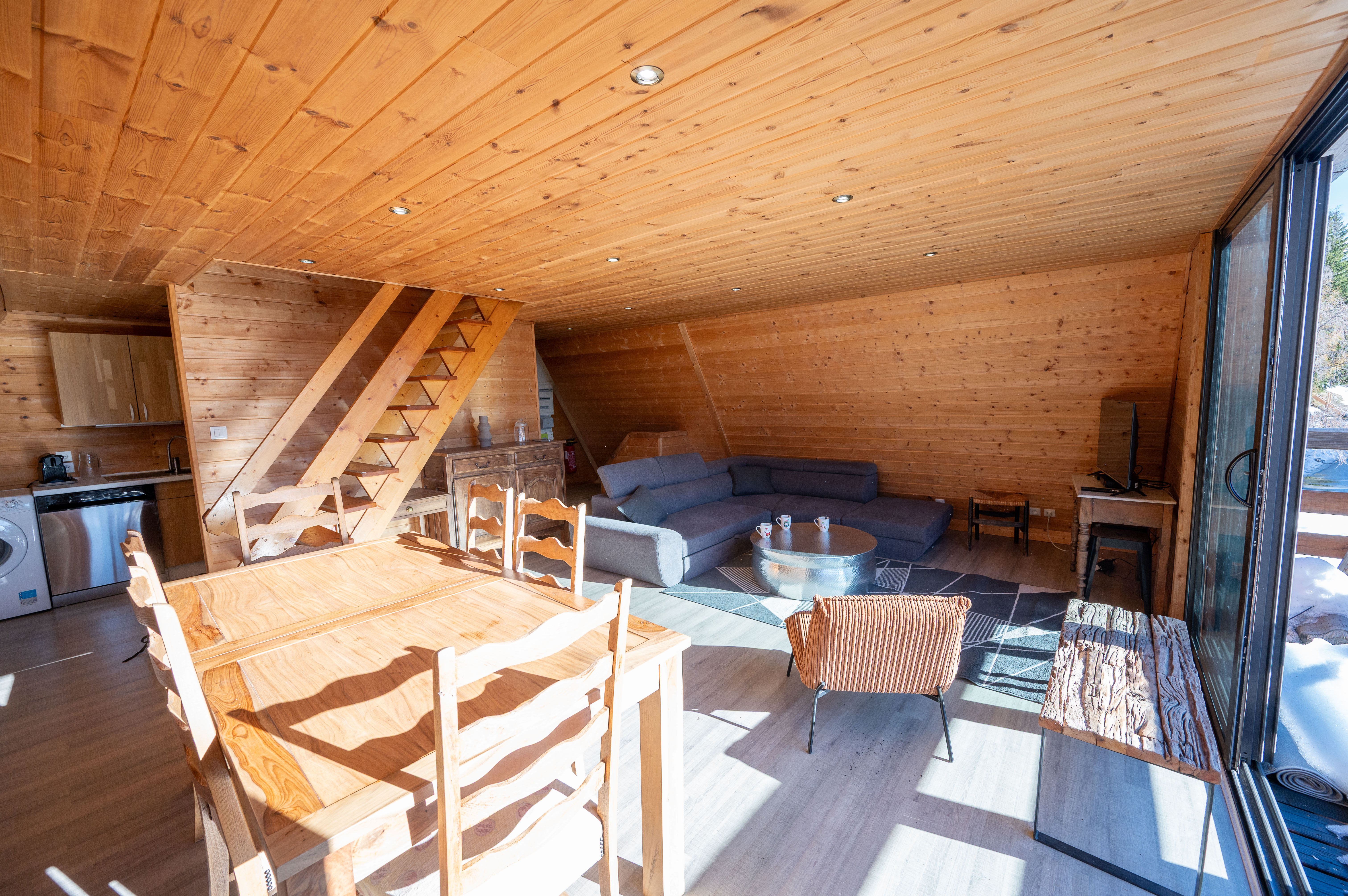 Le chalet est sur 3 niveaux: 1 chambre double, sa salle de bain (baignoire) et WC au rez-de-chaussée, un espace de dépose des équipements de ski également. Au premier étage, un grand séjour cuisine avec balcon plein Sud, ainsi qu'une seconde chambre double avec salle de bain et WC. Le niveau 3 quant à lui est équipé de 2 chambres spacieuses, la première avec un lit simple et un bureau, la seconde propose 2 lits simples et un "coin montagne" avec un lit simple dans l'espace commun de l'étage. Il y a également 1 salle de bain douche et un WC séparé. 2 places de parking sont disponible au bas du chalet.